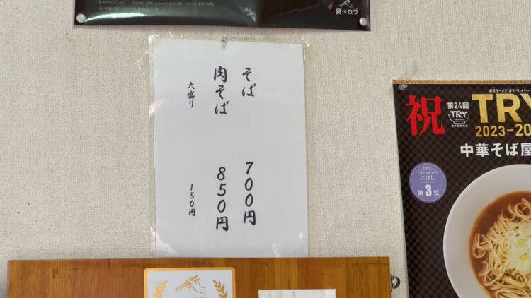 そば700円、肉そば850円。これだけ見たら安く思われるかもしれないが。
